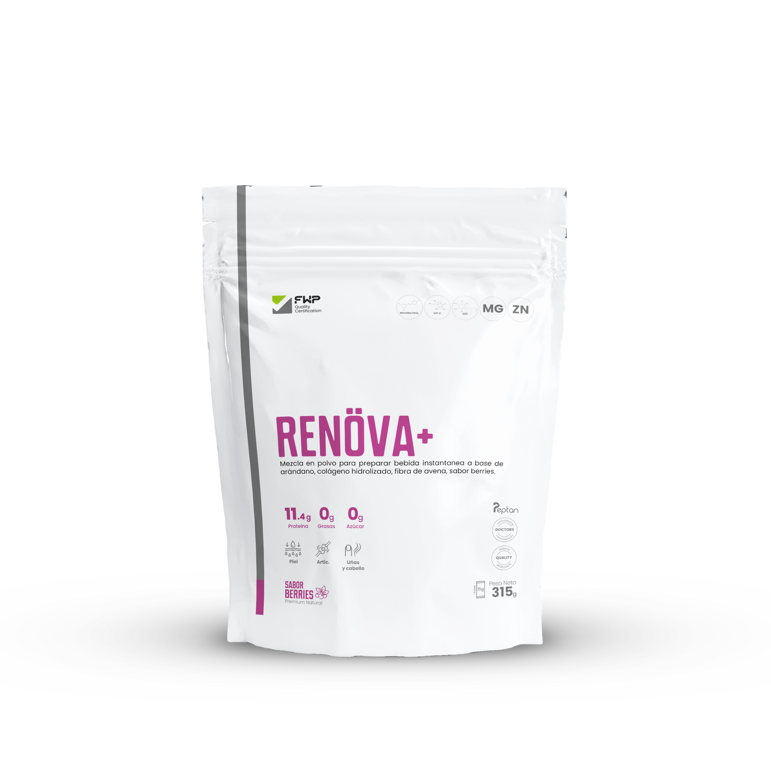 RENÖVA+ también se encuentra reforzado con Zinc y Magnesio, los cuales te ayudarán a mejorar tu sistema inmunológico y fortalecer los huesos con cada toma.